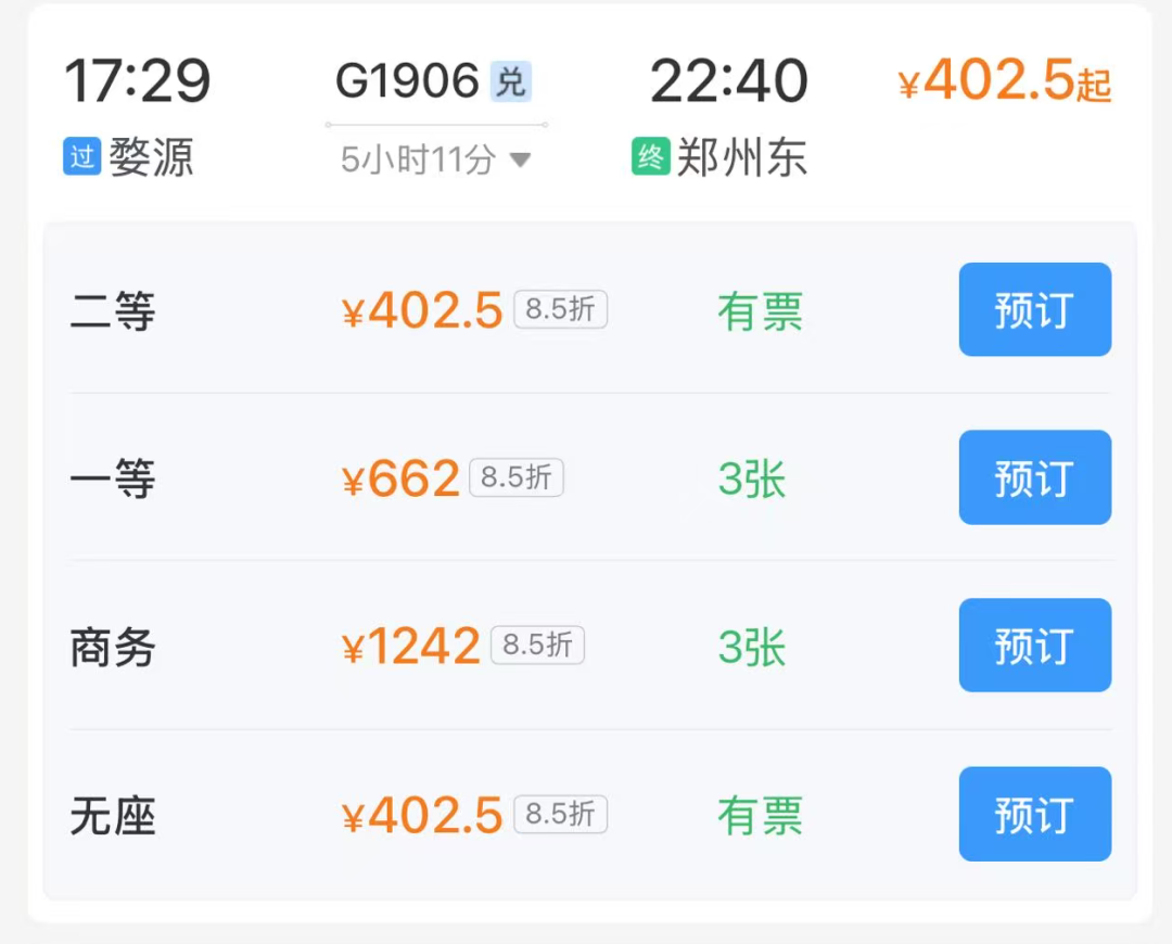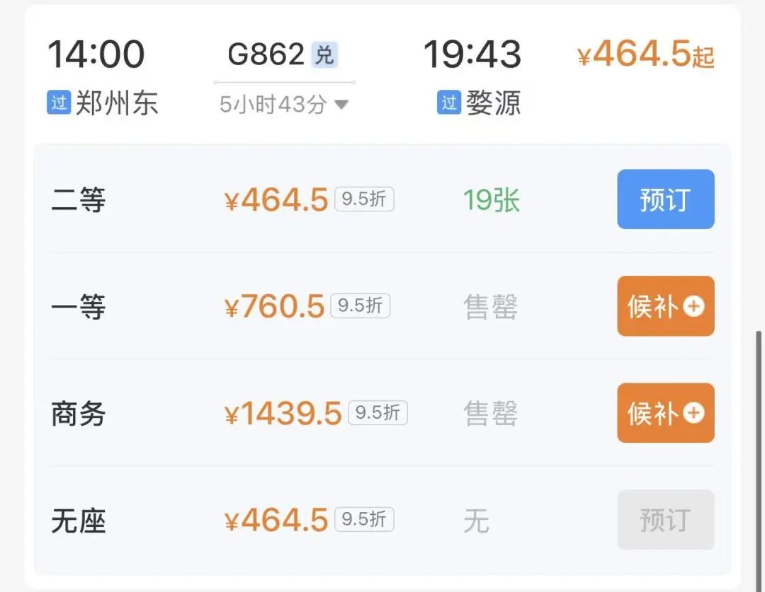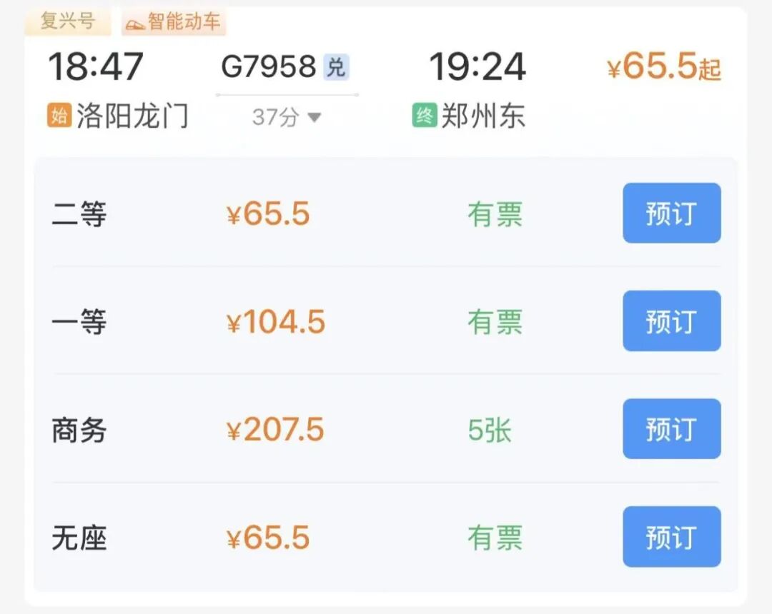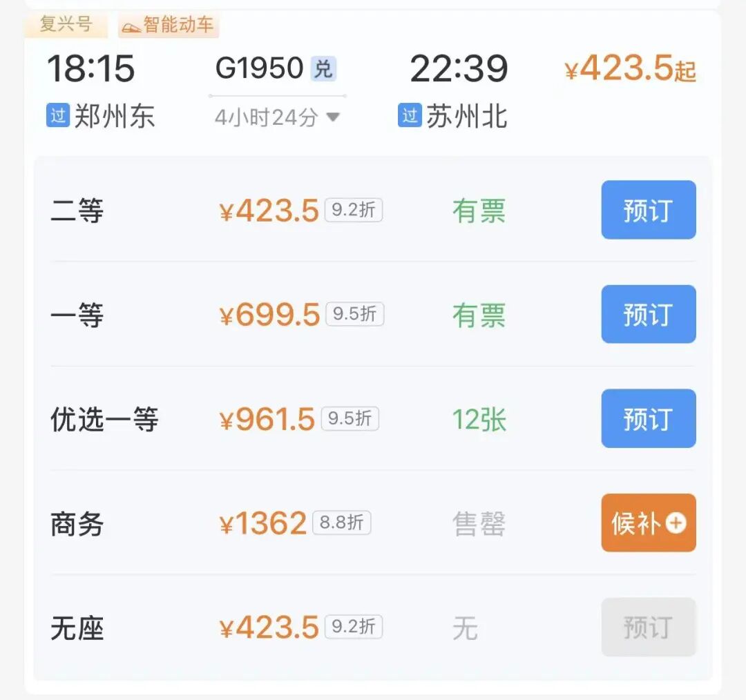 (温馨提示:高铁票数据截图于铁路12306,如有车次运营调整或车票折扣调整,请以实际查询结果为准)