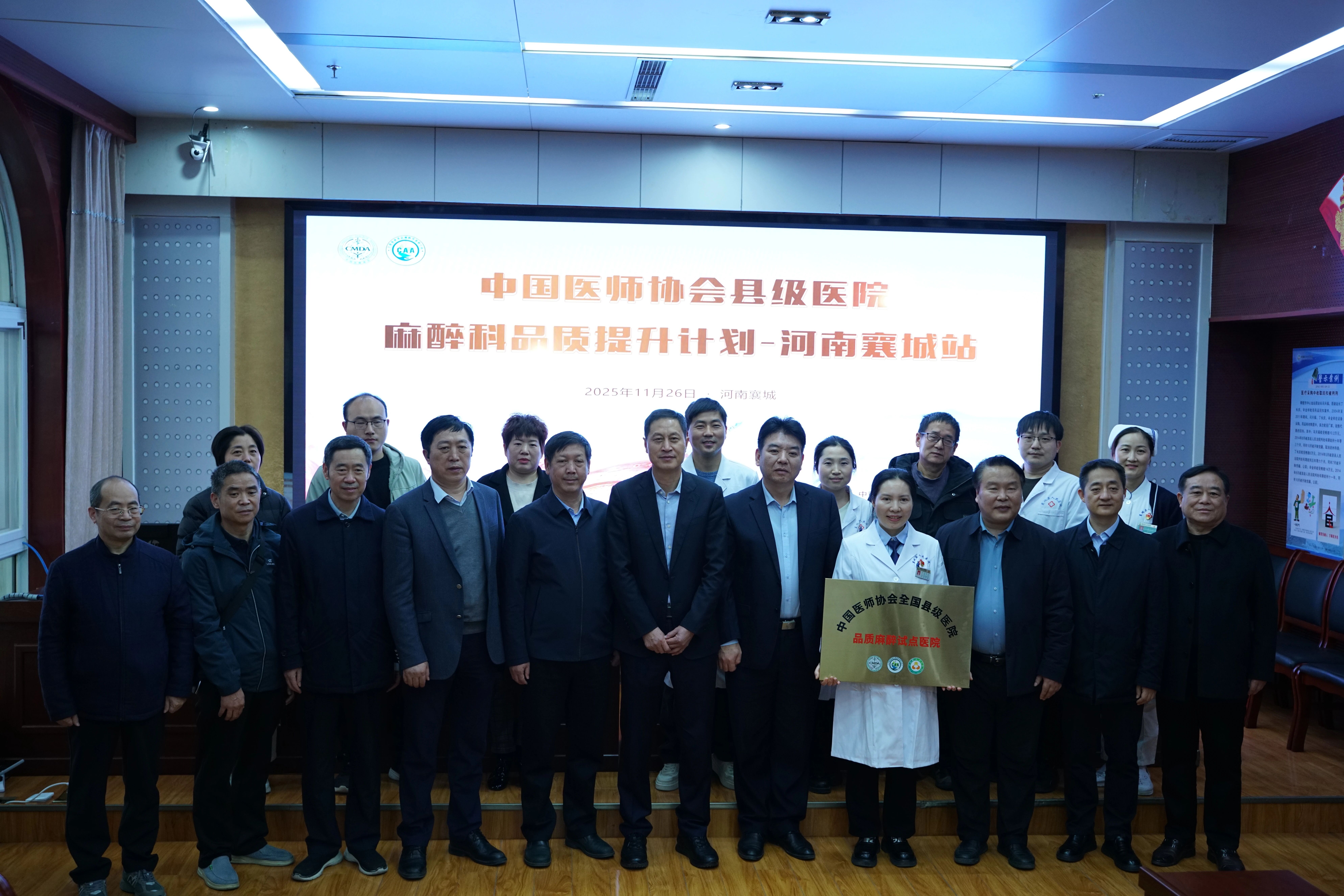 11月26日,由中国医师协会、中国医师协会麻醉学医师分会主办的县级医院麻醉科品质提升计划试点医院成果展示会(襄城站),在襄城县人民医院行政楼会议室举行,会上,襄城县人民医院正式授牌成为“中国医师协会全国县级医院品质麻醉试点医院”,标志着其麻醉学科建设迈入国家级品质提升行列。