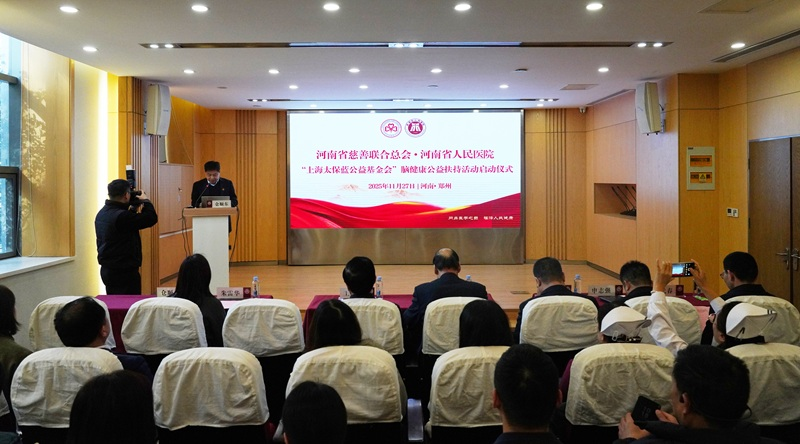 郝义彬书记在致辞中首先对省慈善联合总会长期以来对省人民医院的支持和帮助表示感谢。郝义彬表示,省慈善联合总会作为我省慈善事业的引领者,以高度的社会责任感,搭建起连接社会爱心与群众急难愁盼的坚实桥梁。此次开展的“上海太保蓝公益基金会”脑健康公益扶持活动,既是对双方过往合作的深化延续,更是对老年群体健康需求的精准回应,省人民医院将以专业医疗为支撑,以爱心力量为纽带,筑牢老年脑健康防护网,为提升全省老年群体生活质量、推进健康河南建设作出新的更大贡献。