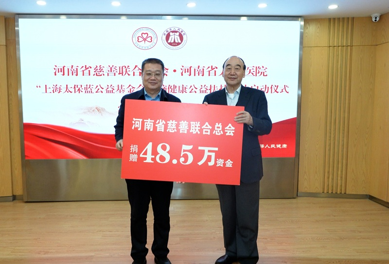 仪式上,邓永俭会长代表省慈善联合总会向省人民医院捐赠资金48.5万元,定向用于郑州市老年认知症(阿尔茨海默病)公益筛查及老年人脑健康公益服务活动,郝义彬院长代表省人民医院接受捐赠。