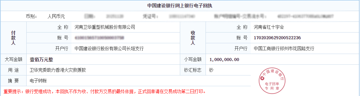 同心同根,守望相助。扎根河南长垣的卫华集团快速响应,党委第一时间启动紧急援助机制,通过河南省红十字会向香港红十字会捐赠100万元人民币,用于香港大埔火灾灾区的现场救援、受灾民众的紧急安置及后续生活保障。