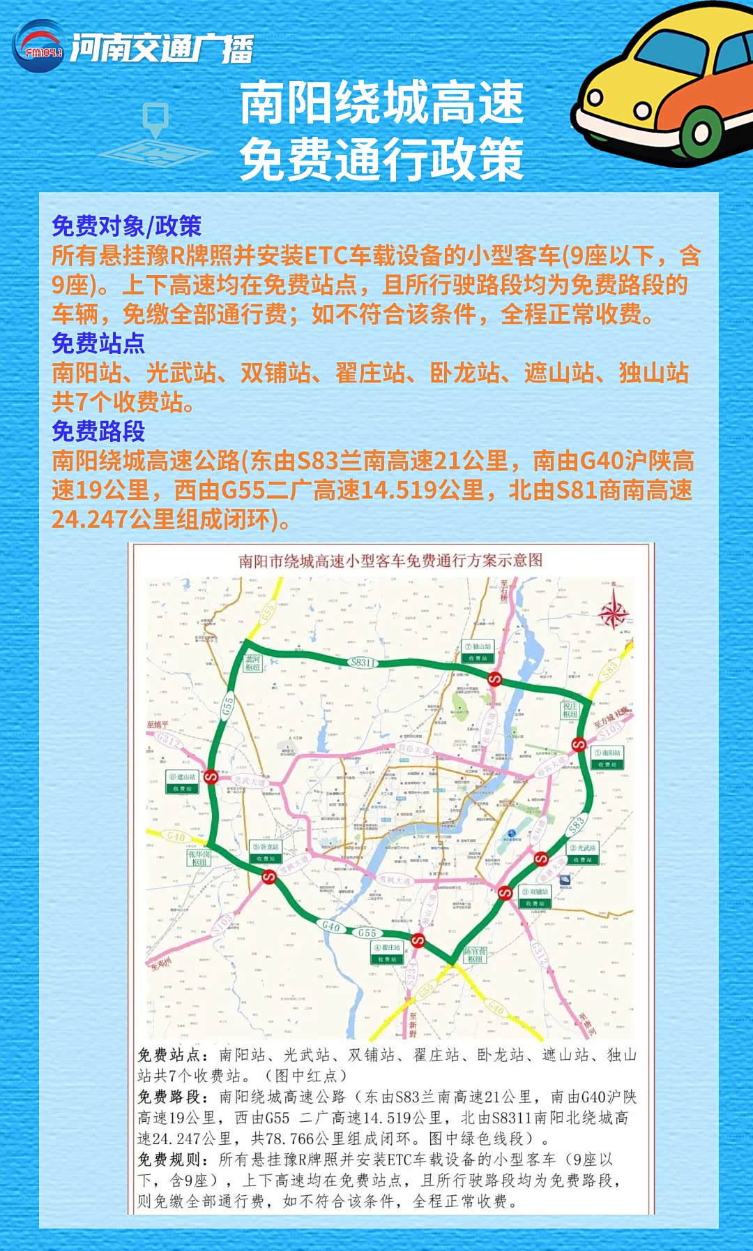 今天给大家集中汇总一下河南省内高速免费路段、站点、免费对象等信息,强烈建议转发收藏!