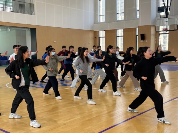 武术课上,同学们起手推掌,体验着中华武学的形神兼备。中新友谊赛场上,羽毛球与乒乓球往来穿梭,竞技的热情瞬间拉近了彼此的距离。