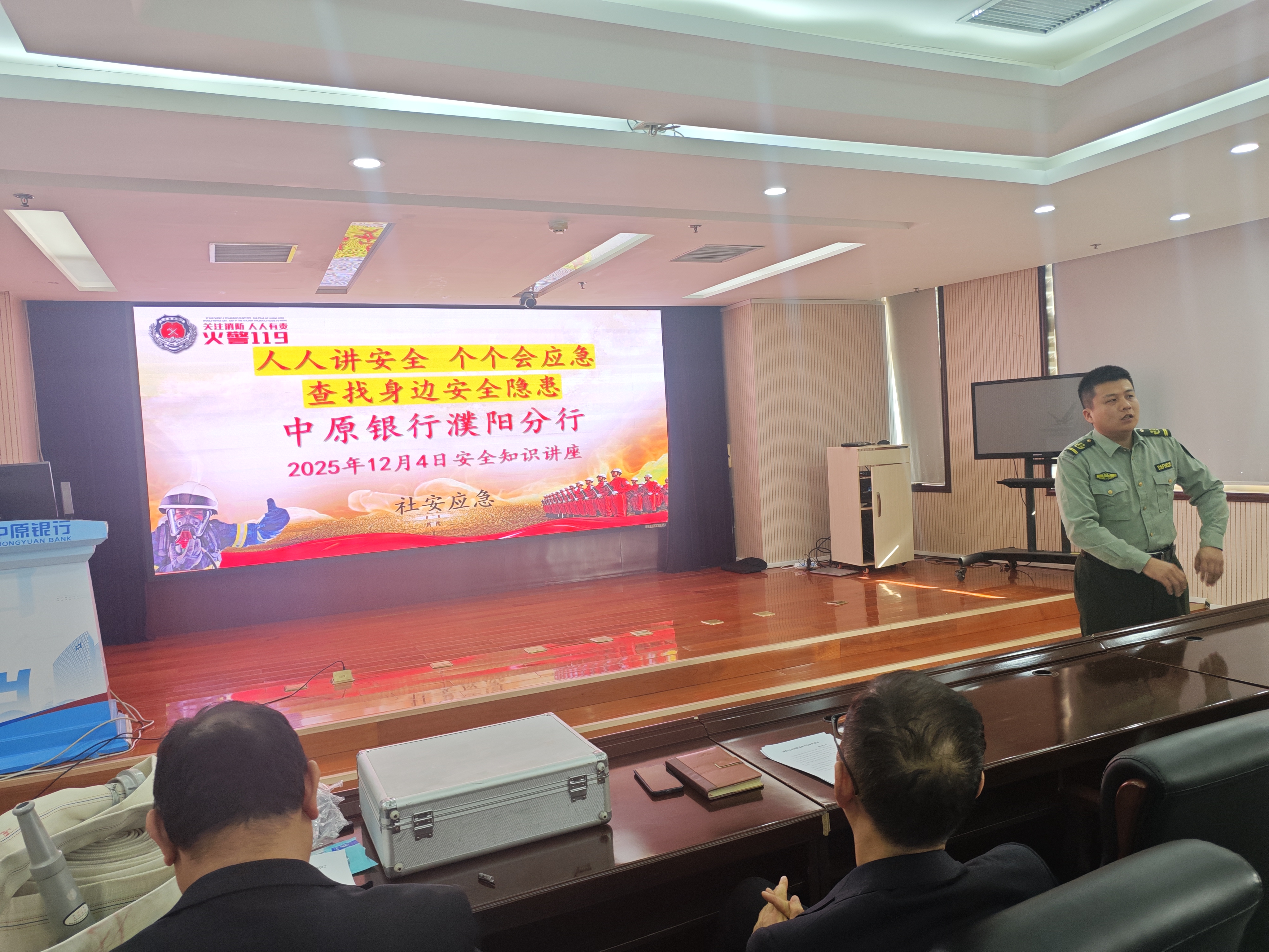 为进一步夯实消防安全管理根基,切实提升全员消防安全意识与应急处置能力,12月4日,中原银行濮阳分行金融科技部(安全保卫部)牵头组织全行员工开展消防培训及应急疏散演练活动。