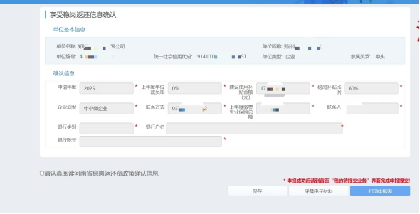 操作步骤:登录河南省社会保障网上服务平台——单位业务——享受稳岗返还信息确认——勾选“确认享受”。