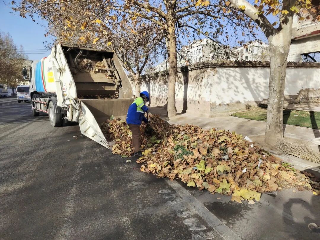 郑州城管环卫部门启动应急作业模式,实施“清扫——归拢——装袋——定位——清运”闭环管理,对主干道、公交站台、学校周边等人员密集区域开展“动态清扫+集中清运”,做到落叶“随时落、及时清”,避免堵塞收水井或产生二次污染。