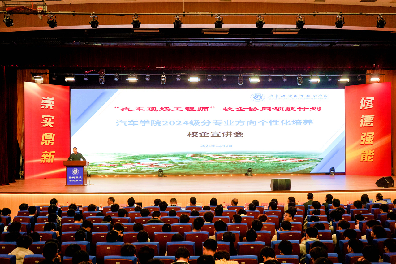 12月2日,广东机电职业技术学院职业培训楼大礼堂内掌声雷动,“汽车现场工程师”校企协同领航计划启动会在此盛大举行。作为落实国家产教融合战略、服务汽车产业 “电动化、智能化、网联化、共享化”转型的关键举措,此次活动汇聚了广汽集团、小鹏汽车、极氪汽车等9家行业头部企业代表及500余名师生代表,共同见证职业教育与产业发展深度融合的重要时刻。