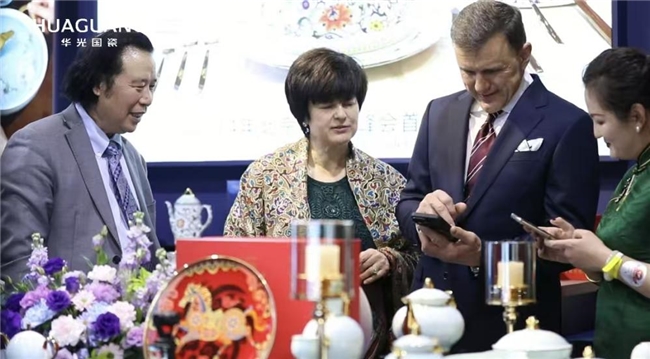 华光国瓷吸引了包括北马其顿前总理弗拉多·布茨科夫斯基、波黑驻华大使西尼萨·贝尔詹及夫人、牙买加驻华大使亚瑟·威廉姆斯及夫人、国学大师范曾等上百位嘉宾的长久驻足和高度赞誉。