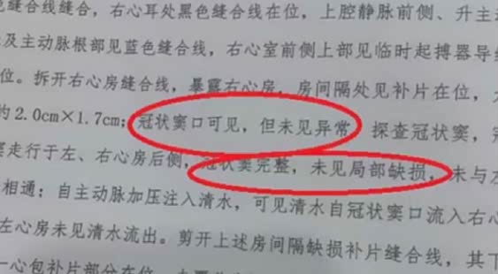 报告明确显示,小洛熙的心脏存在1.0cm×0.9cm房间隔缺损,且冠状窦口未见异常,直接推翻了院方术前诊断的“复杂畸形”结论;医学共识中,5毫米以下无症状房缺1岁内自愈率超80%,而小洛熙的缺损尺寸已超出该范围,是否需要紧急手术需结合临床症状综合评估,但院方术前“不手术恐致脑瘫”的警示,显然违背了审慎的诊疗原则,涉嫌误导家属。更关键的是,报告指出手术切口未缝合、心脏残留补片等操作违规,结合病历中“22:03宣告死亡却22:20仍记生命体征平稳”的时间线矛盾,直接戳破了医院“手术成功”的说法,直指医疗操作的严重失范与刻意隐瞒。此外,尸检初步指向患儿死亡与肺静脉梗阻、肺水肿及心脏传导系统损伤相关,为后续因果关系认定提供了关键线索。