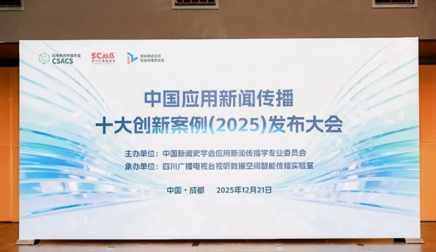 12月21日,2025中国应用新闻传播十大创新案例发布大会在成都发布。人民日报健康客户端“数智融媒多终端传播平台”、上海报业集团“聚力打造头部平台”、浙江日报报业集团“打造省级技术赋能平台”、湖南广播影视集团(湖南广播电视台)“战略引领生态型变革”、四川广播电视台“互联网运营型智媒”、南方报业传媒集团“深度一体化改革典范”、新华报业传媒集团“在交汇中变革”、河南广播电视台“文化+科技战略引领”、深圳报业集团“科技驱动媒体生态焕新”、湖州市新闻传媒中心“指尖办事求实效”入选“2025中国应用新闻传播十大创新案例”。