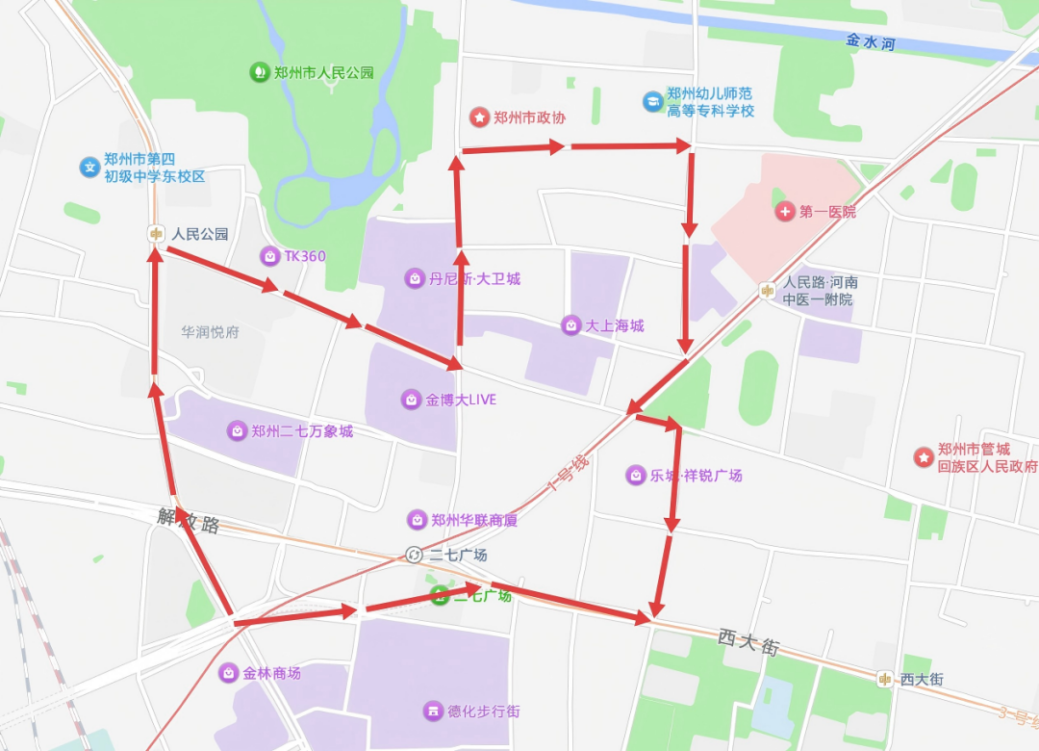 6.二七商圈、大卫城(西太康路民主路至二七路、二七路西里路至东太康路);