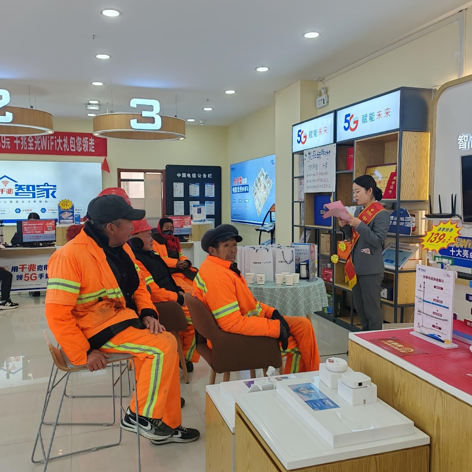 2025年12月30日,渑池新华街营业厅组织开展了“关爱一群人 温暖一座城”活动。活动围绕现场授课方式对环卫工人开展防诈骗知识宣传讲解,重点举例描述诈骗手段,活动现场爱心大使为环卫工人的讲解让他们明白了:什么是两卡,两卡犯罪的内容以及严重后果,给环卫工人带来了很好的警示。