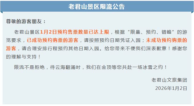 老君山景区限流公告