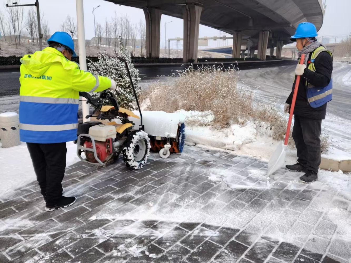 新年的第一天,1月1日,该集团城市环卫板块广大一线职工以网格为单位进行“扫尾”作业。他们手持推雪板、铁锨,对人行道、公交站台、过街天桥台阶以及商户门前的残余冰雪进行彻底清除。针对机械难以触及的角落和已被压实的薄冰,环卫职工们进行破冰,并播撒少量环保型融雪剂,确保行人脚步下的路途安全。