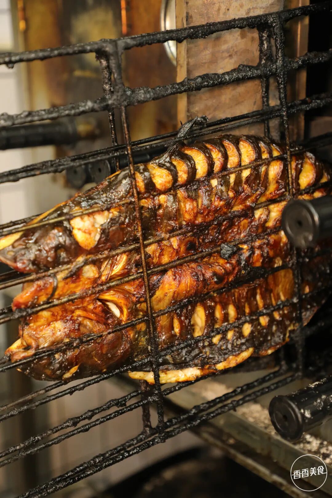 印象里烤鱼最常见的味型,基本就是五香、麻辣、香辣、黑胡椒、番茄等这些口味。但面前这份烤鱼,仅仅是加热后散发出来的香味,就让人忍不住惊奇。这个香味和以往吃到的烤鱼香味都不太一样,香辣中还带着微微发酵的酸香。