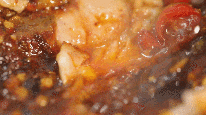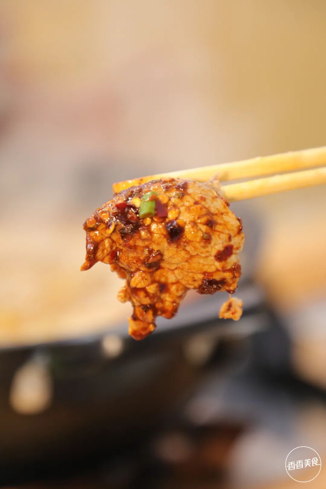 豆米火锅刚开始煮的时候可能感觉不到它的美妙之处,但随着时间的流逝,豆米的黏性就慢慢挥发出来了。汤头开始变得浓稠,料头的滋味也会吸附到食材上。吃的时候还可以直接舀上一勺豆米汤汁盖在米饭上,一口吃下去,还真是“安逸得很”!