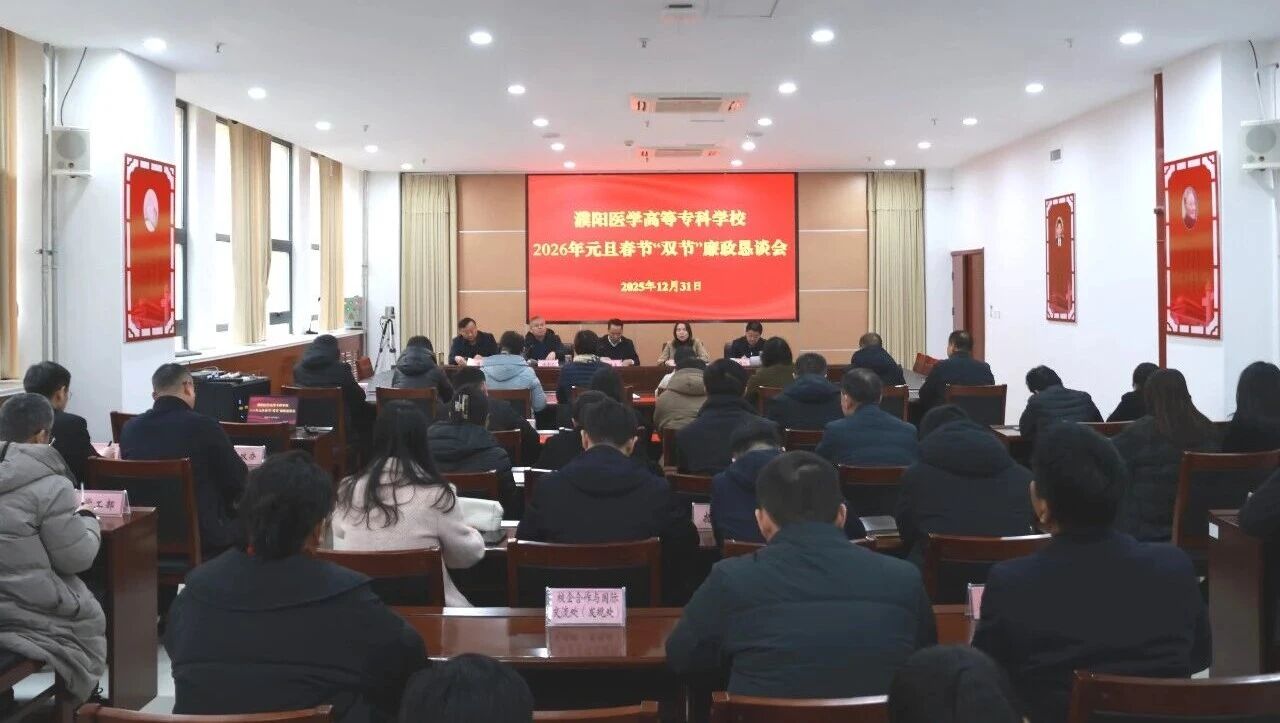 为深入贯彻落实上级纪委监委关于节日期间正风肃纪工作部署,进一步强化党员干部廉洁自律意识,筑牢拒腐防变思想防线,营造风清气正的节日氛围和育人环境,12月31日,濮阳医学高等专科学校召开2026年元旦春节“双节”廉政恳谈会。在校领导班子成员出席,各行政处室、各学院主要负责同志,各党总支(支部)书记、第二附属医院有关同志参加。