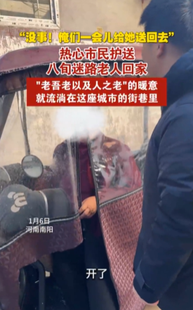 1月6日,南阳市热心市民护送八旬迷路老人回家,“老吾老以及人之老”的暖意,就流淌在这座城市的街巷里。