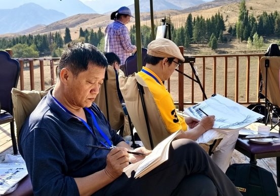 2025年参与的“苏韵伊情”与“大美伊犁 美美与共”两项跨文化写生活动,进一步彰显了温斌艺术实践的开放性。前者是江南细腻美学与边疆壮阔气象的对话,后者则是跨界的视觉交流。在这种双重对话中,温斌的边疆山水画成为一种“转译装置”,既向内地观众传递边疆的当代面貌,也向国际观众展现中国山水画的现代生命力。他的作品被伊犁州文化馆收藏,不仅是对其艺术成就的认可,更意味着一种地方文化身份的视觉建构正在形成。