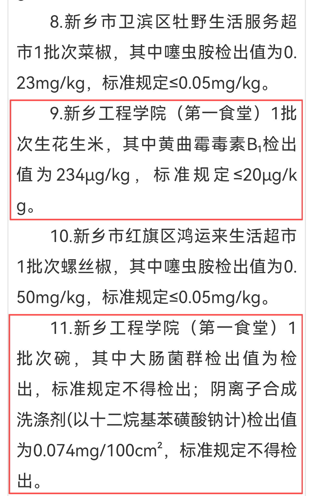 “第一食堂被市场监督管理局通报两次,我们担心影响孩子的身体健康。”近日,大象新闻接到新乡工程学院家长求助,新乡市市场监督管理局在2025年12月30日发布17批次食品不合格情况的通告,新乡工程学院(第一食堂)涉及2个批次、3项内容。