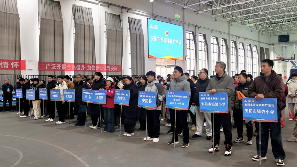 1月17日上午,安阳市岳家拳推广活动在汤阴县全民健身馆正式拉开帷幕。来自全市各县(市)区的武术骨干及高校、中小学的体育教师等百余人参加了为期两天的学习推广活动。这次学习推广活动的主题“传承岳家拳术,弘扬精忠精神”