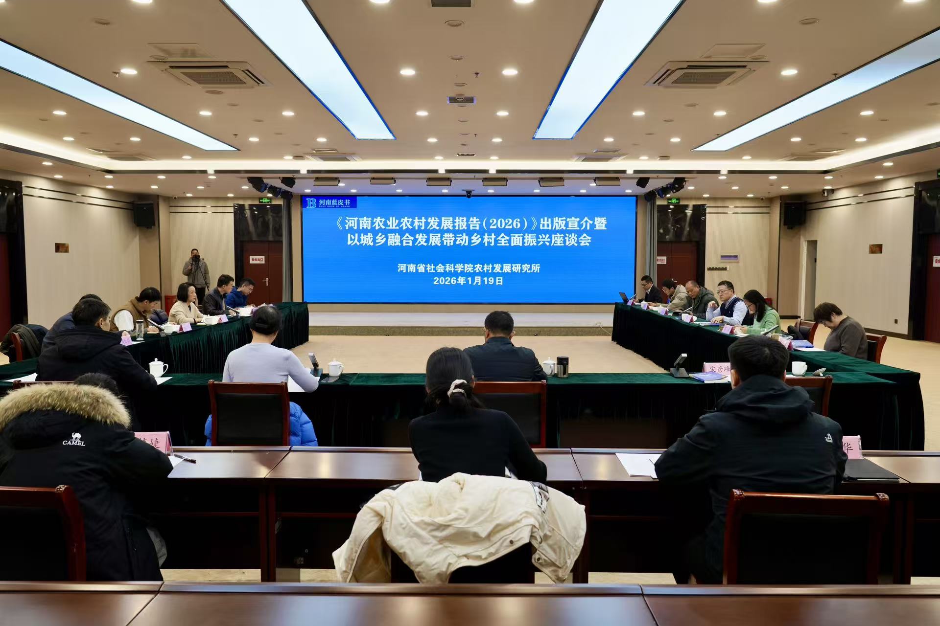 2026年1月19日,河南省社会科学院组织召开《河南农业农村发展报告(2026)》出版暨以城乡融合发展带动乡村全面振兴座谈会,来自河南农业大学、河南工业大学等单位的领导、专家学者以及主创团队成员参加了会议。会议共分为出版发布和学术研讨两个环节,由省社科院农村发展研究所所长、蓝皮书主编陈明星研究员主持。