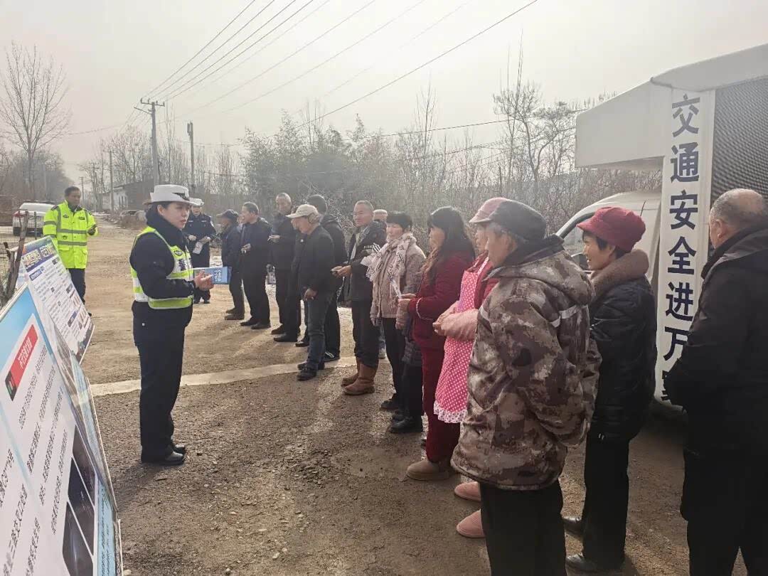 为切实提升农村地区群众交通安全意识,有效预防和减少农村道路交通事故发生,1月28日上午,洛阳市宜阳县公安局交通管理大队机关宣传队走进高村镇宋王沟村,组织开展接地气的冬季交通安全宣传活动。