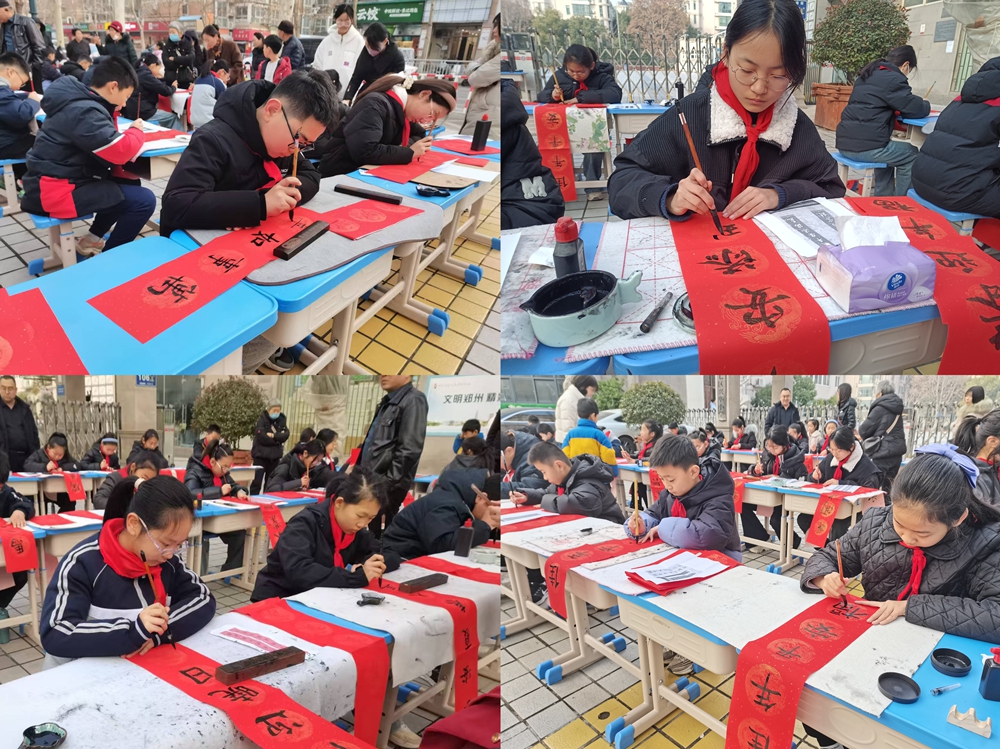 金马奋蹄启新程,新春逐暖赴佳期。写春联、贴春联是中华民族流传千年的民俗瑰宝,承载着千家万户对新年的美好期许,更是传承中华优秀传统文化的重要载体。为弘扬书法艺术、传递新春暖意,2月3日上午,郑州市二七区兴华小学在校门口隆重举办“骏马迎春·福送万家”义写春联活动,以笔墨传情,让传统文化浸润人心,既为学生搭建实践平台,也为社区居民送上诚挚的新春祝福。