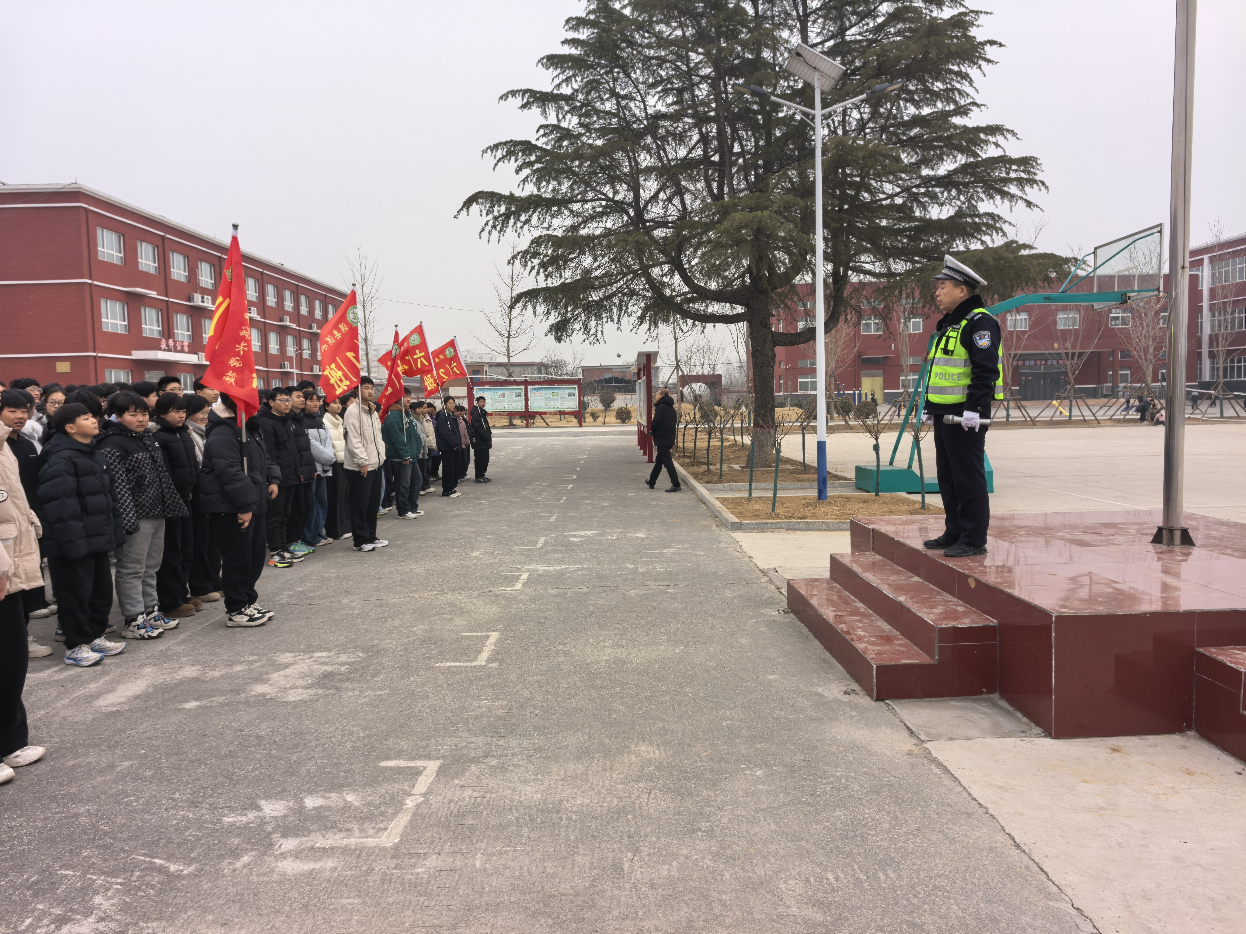 寒假将至,学生外出活动增多,出行安全成为社会关注焦点。连日来,河南省淇县公安局交警大队组织民辅警深入辖区各中小学校及幼儿园,开展冬季交通安全进校园宣传活动,为孩子们上了一堂堂生动实用的“假期前安全课”。