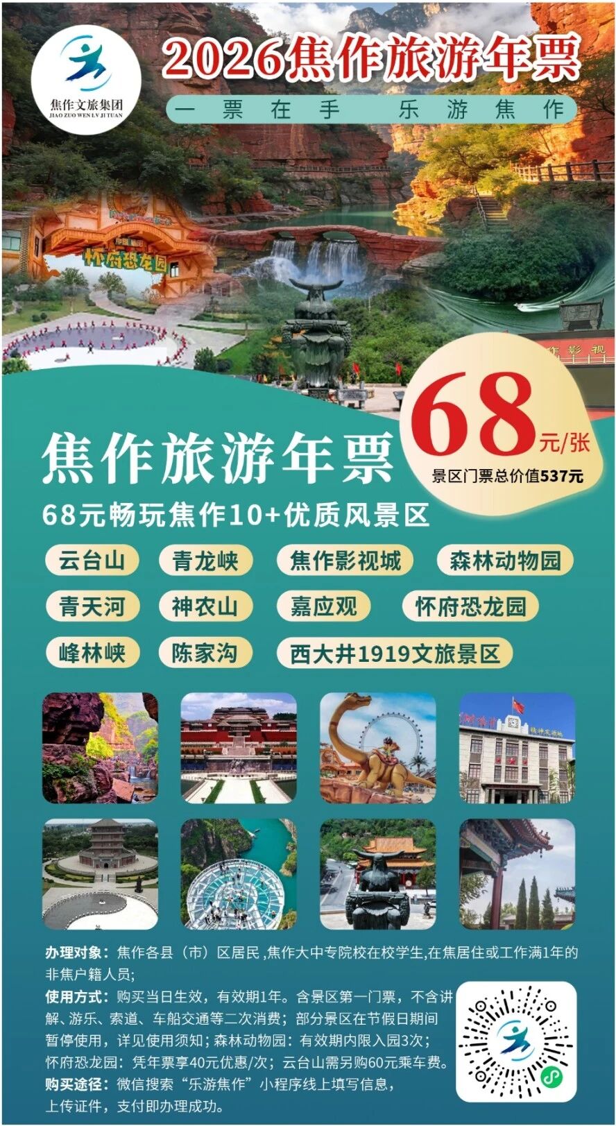 本次焦作旅游年票面向三类人群开放办理,真正实现全民惠民: