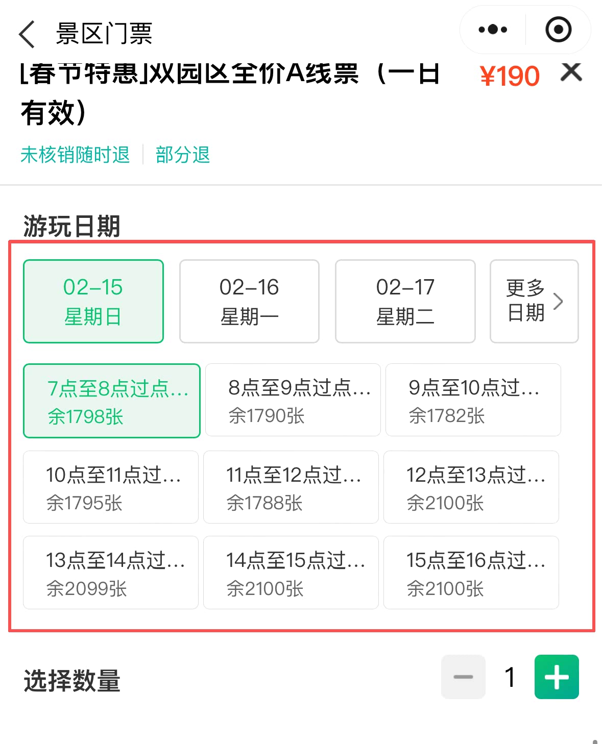④选择购买入园的时间