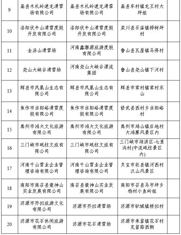 参与2025年河南省冰雪运动消费券发放活动滑雪运动场所名单