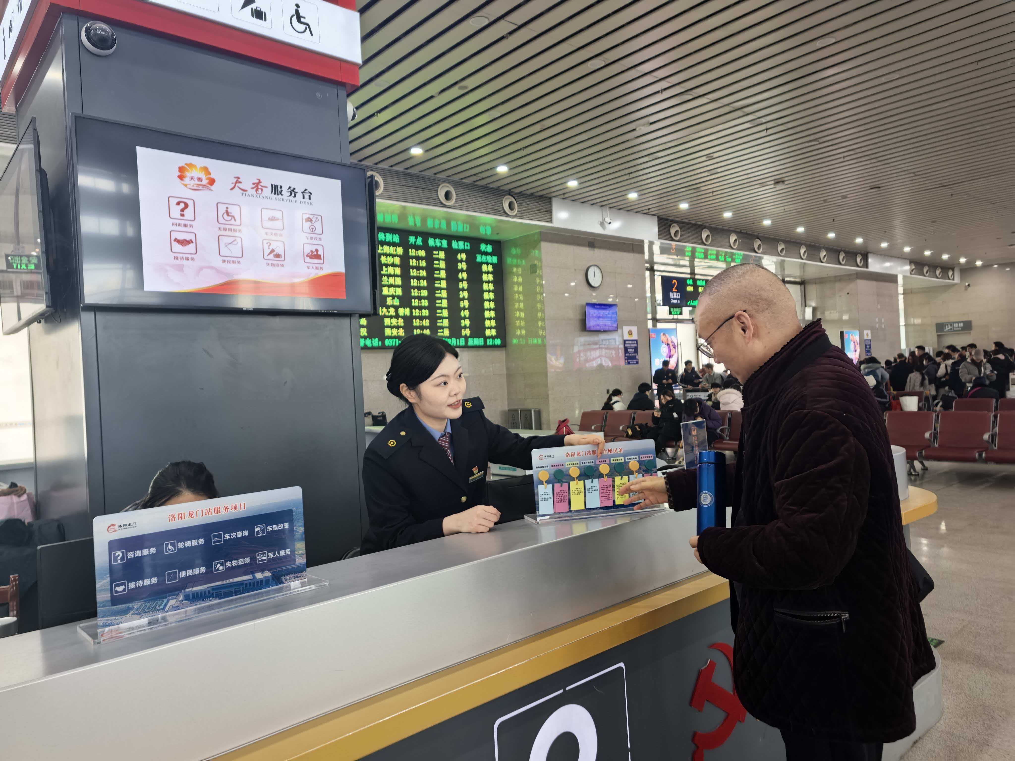 为提高旅客出行体验,国铁集团郑州局优化站车服务举措,加大便民利民惠民举措实施力度,服务旅客平安有序温馨出行。郑州东站升级站内服务台,实现重点旅客服务、问询解答、车次查询等业务“一窗通办”,平均业务办理时间从8 分钟压缩至 2 分钟;洛阳龙门站针对节前返程大客流,在站台、电梯口等重点区域增设值守人员,利用喇叭加强安全宣传,随时提供乘降指引、困难帮扶等服务;安阳站加强站车联控,提前预判客流情况,加强大客流列车值守力量,引导旅客安全有序乘降;焦作站针对外籍旅客增多,在售票窗口、实名制验证等岗位配备了手持翻译器;新乡站、许昌站针对老幼病残孕等特殊旅客,配备轮椅、急救箱等便民设施,提供“一对一”全程护送服务;商丘站上线“轻装行”业务,提供行李暂存、上门取送等便捷服务,减轻旅客出行负担;长治东站联合地方文旅在候车室安装打卡展板,开展“坐着高铁看中国,太行山上过大年”主题活动,营造良好出行氛围。