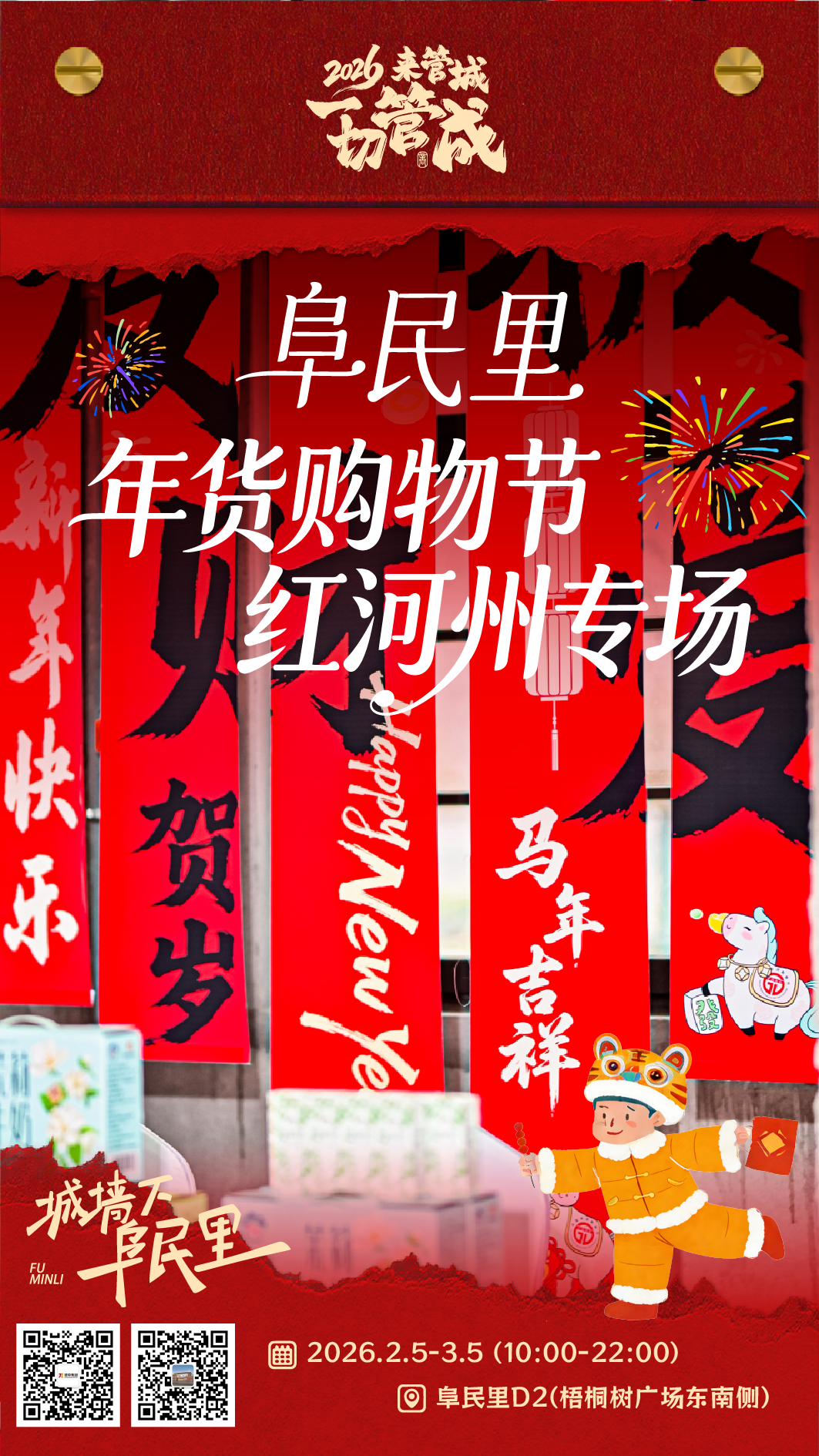 作为第十六届全国年货购物节红河州专场承办地,阜民里还有滇风特色产品与非遗体验等你来解锁,再加上各类特色美食云集,好吃、好玩、好看一应俱全,承包全家老小的新春欢乐时光。