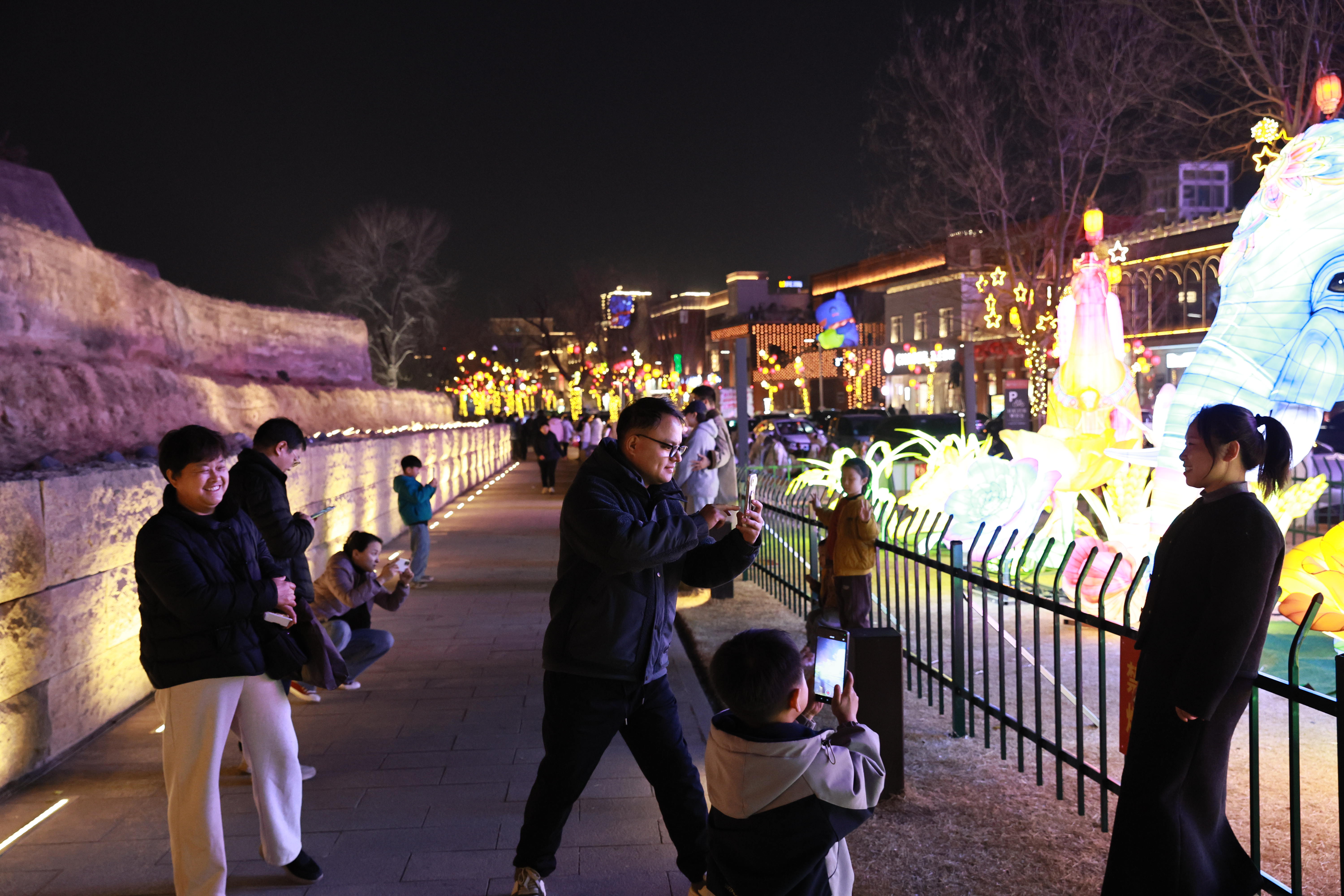 华灯初上,夜色中的阜民里美轮美奂,让往来市民在灯火间邂逅老城的别样韵味,沉浸式感受“城墙下过年”的独特氛围。