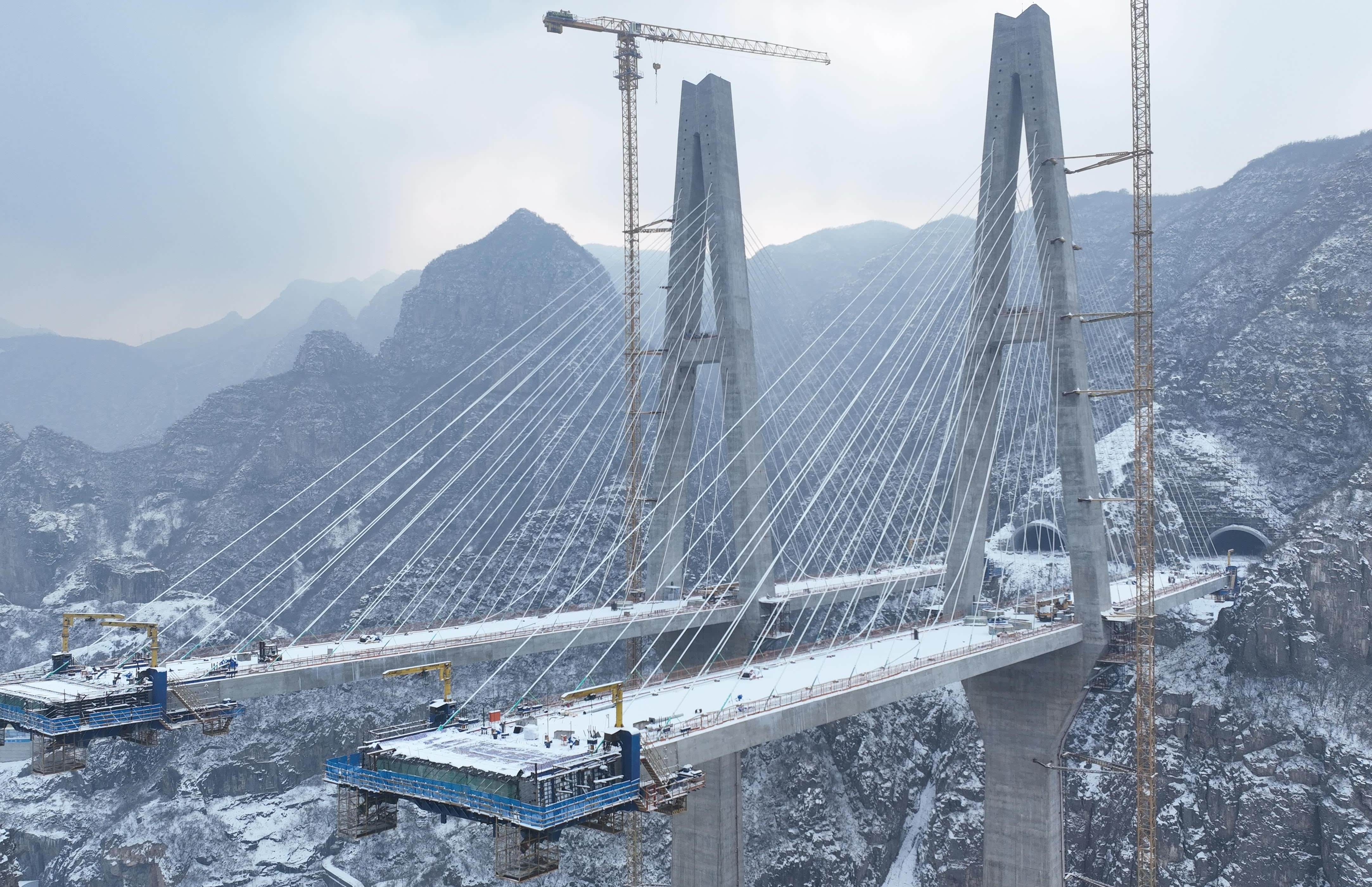 据了解,后寺河特大桥索塔已于2025年4月顺利封顶,主梁施工正稳步推进。施工采用牵索挂篮工艺,右幅主梁已完成15个块段浇筑,左幅完成14个块段,整体进度达61%。根据计划,全桥将于2026年8月实现合龙,同年10月完成桥面贯通,为郑洛高速全线通车提供关键支撑。