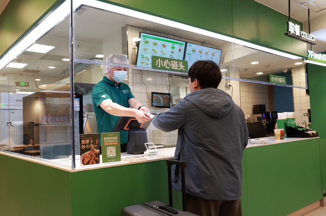 “在旅途中,旅客最核心的用餐诉求就是安心、便捷、热乎,我们希望通过北京南站店这个样本,提升旅途用餐的安心标准。” 七鲜小厨北京南站店店长闫海山说。
