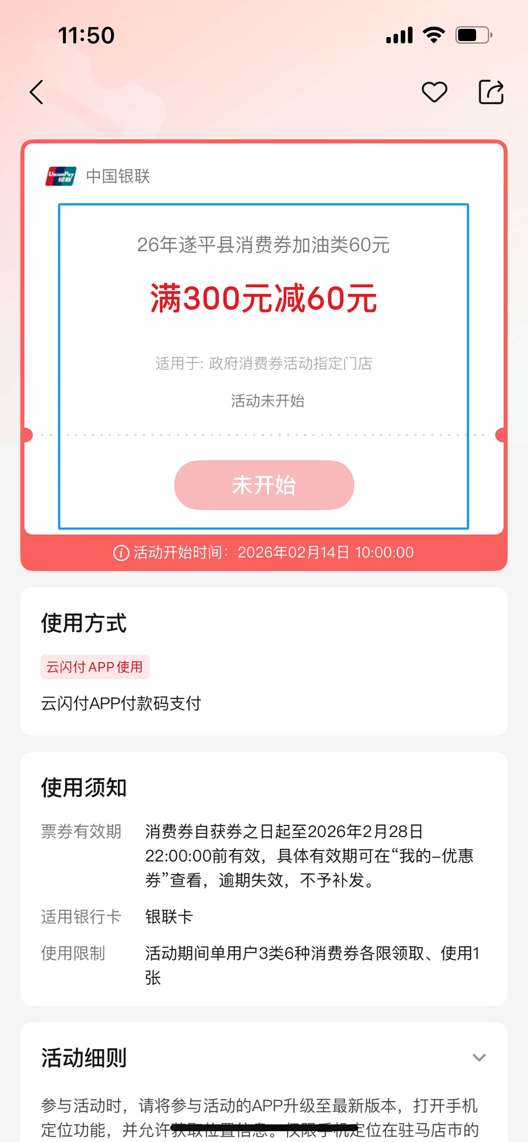 使用范围:零售/餐饮类消费券、成品油类消费券