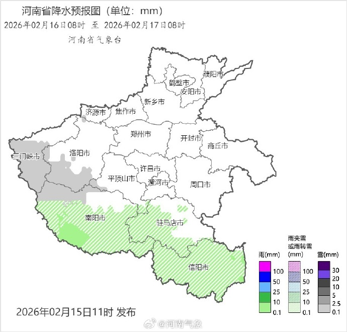 大象新闻 河南交通广播记者 李芳 夏青 2月12日,记者从河南省气象局了解到,省气象台预计2026年春节假期前期和后期,我省有两轮雨雪降温天气过程,15日至16日(除夕)白天,西部、中南部有小雨或雨夹雪,高海拔山区有小雪,气温较前期下降10