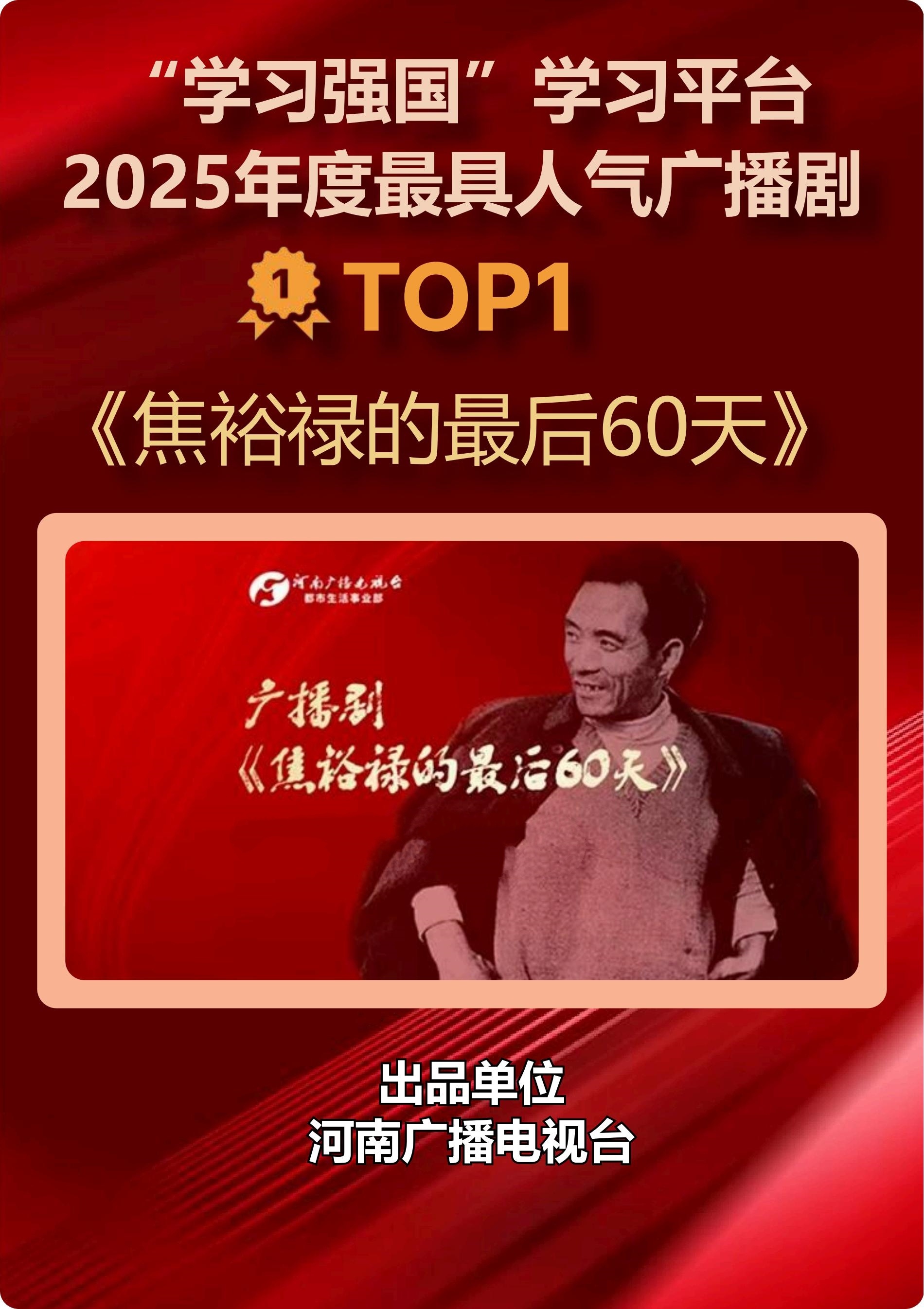 近日,“学习强国”学习平台“2025年度优秀广播剧集中展播暨人气作品投票”活动成功举办。本次活动获得广大用户的高度关注与积极参与,互动投票115万余人次。按照听众喜爱程度,《焦裕禄的最后60天》《军号无声》《红旗渠了不起》等2025年度最具人气广播剧前十名正式出炉,快来看看都是哪些作品吧。