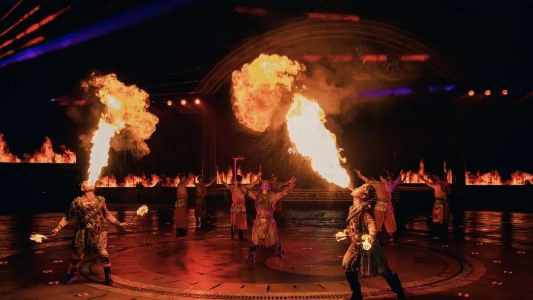 非遗“打铁花”与特效“天火”剧目精彩不断。