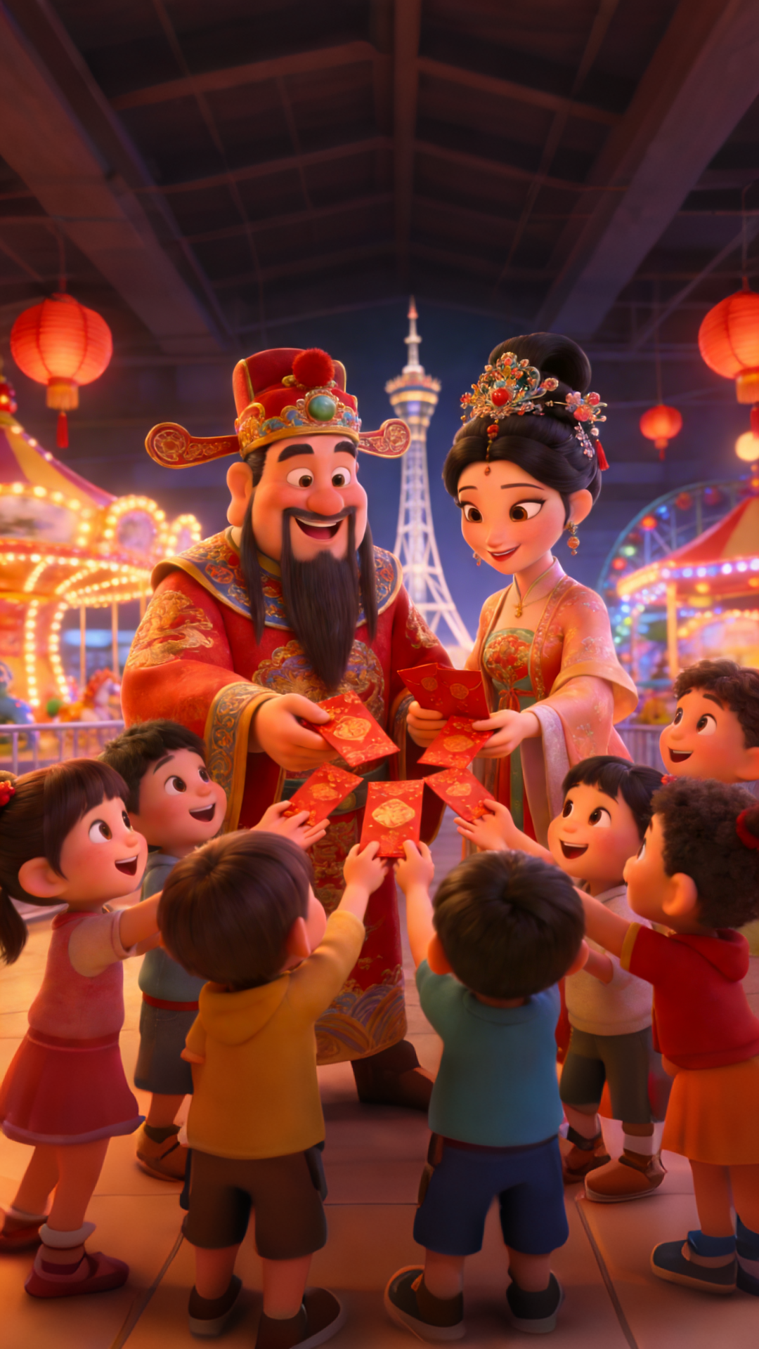 大年初五当天,中原福塔2楼大厅将成为“迎财神”的核心场地。身着华服的财神NPC将穿梭于人群中,向游客派发现金红包,寓意“马上有钱”的好彩头。财神会与游客合影留念、送上新春祝福语,让每一份红包都承载着节日的温暖与诚意。