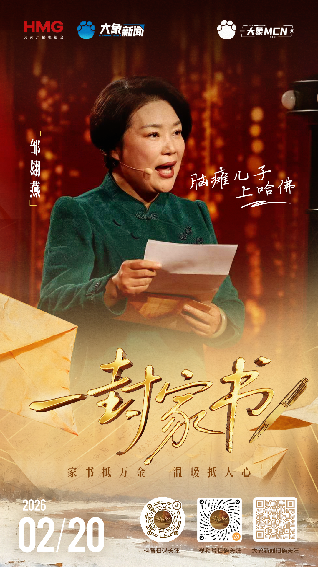 视频号搜索“一封家书官方”账号
