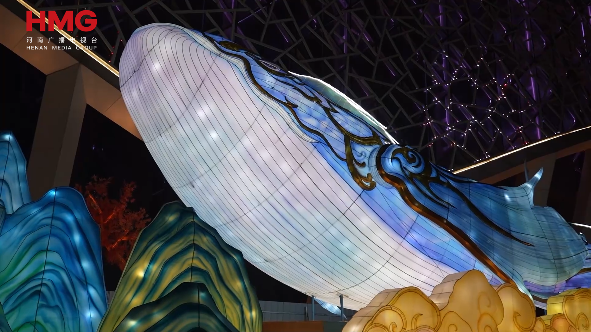 鲲鹏展翅融太行气韵与《逍遥游》意境,光影勾勒出山峦与鹏翼的雄浑;穆华清辉灯组里,穆桂英红色戏装造型栩栩如生,还能缓缓睁眼,眉宇间英气与柔美尽显;五谷丰登还原粮仓与农作物造型,满满丰收意,一盏盏彩灯融合自贡彩灯技艺与新乡属地文化于一体,用声、光、影勾勒出别样的非遗之美。每一组灯景都承载着新年的美好希望,“天女散花”光影秀尤为吸睛,漫天飞舞的花瓣与翩跹仙子光影交织,吸引很多游客驻足观看。