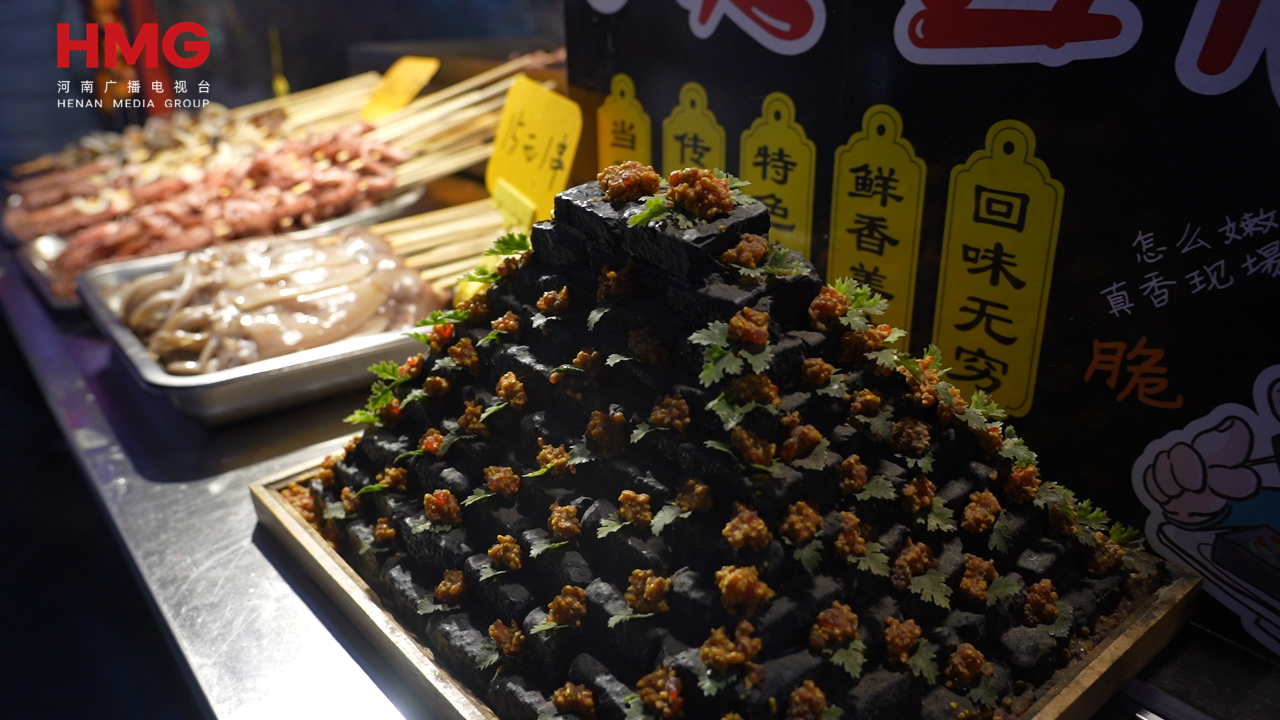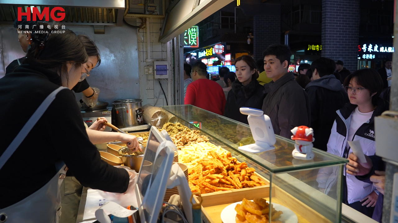 夜幕降临,新乡市的老牌街区——西大街灯光璀璨,游人如织。各类中原特色小吃、网红美食依次排开,这里有数不清的宝藏,酸辣粉、猪蹄、臭豆腐......游客们边走边尝,感受浓浓的年味儿。