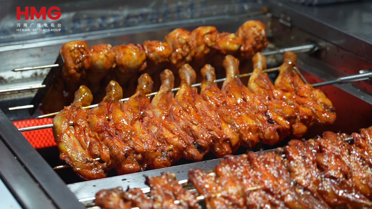一位卖肉夹馍的商户手里一边熟练地操作,一边兴奋地跟我们介绍:“今年春节的人流特别多,感觉着像过年的样子,非常热闹,我们这个商业街也比较好,比较聚人气。”