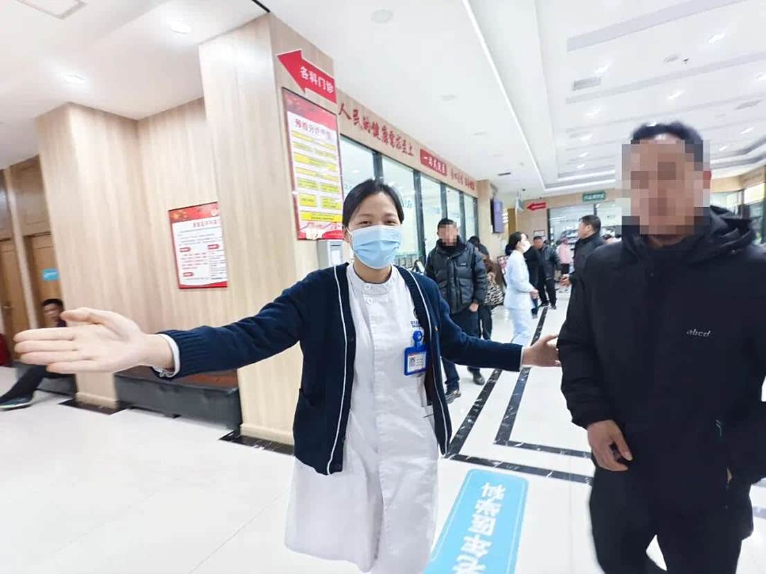 医院门诊大厅里,导医人员精神抖擞,耐心引导每一位就诊群众,答疑解惑、指引流程,用微笑传递温暖;