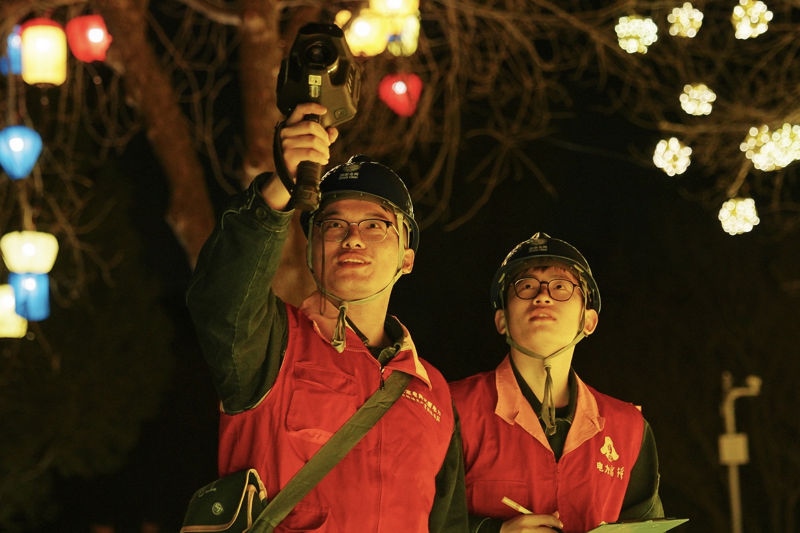 针对活动期间用电负荷集中、保障标准高、现场人员密集的特点,公司成立专项保电工作小组,制定“一景区一方案”保电措施,提前对园区供电线路、配电设施、演出及灯组用电点位开展拉网式排查。保电人员穿梭于灯组之间,加密夜间及演出高峰时段特巡频次,实时监测线路负荷与设备运行情况,做到隐患早发现、早处置。同时,在景区核心区域部署应急发电车全程待命,配齐抢修人员与物资装备,全力确保演出不停、灯光不熄、用电不间断。