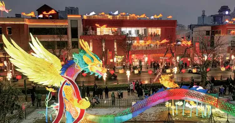 亮点:从地平门南顺城街出发,沿城南路至阜民里,围绕商城遗址打造马年传统文化元素灯组阜民里、北庆里则以氛围性灯组(树灯、宫灯)为主。