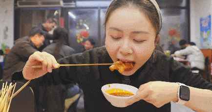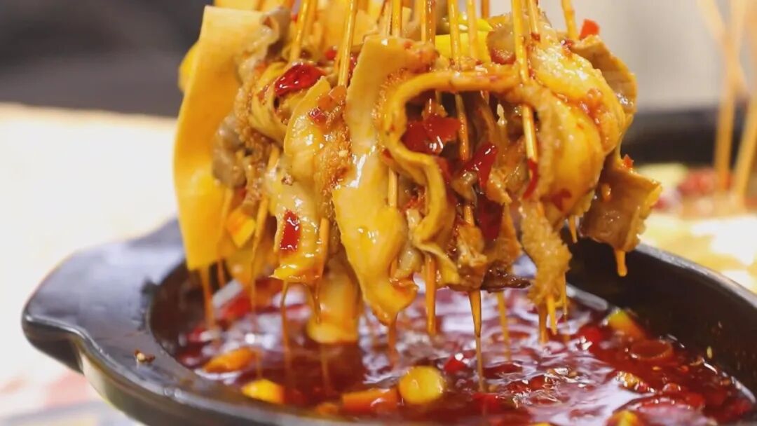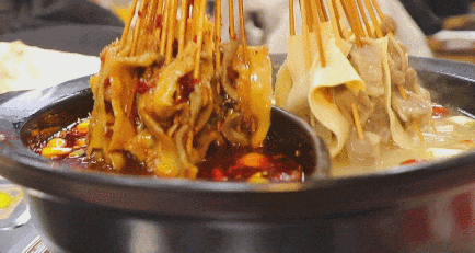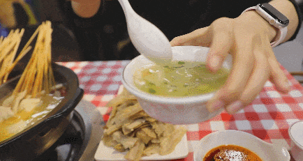 重点来了,吃砂锅涮牛肚,绝对少不了一碗辣椒油,这可是点睛之笔。拿起一串牛肚,在辣椒油里打个滚,再咬一口,瞬间被香味惊艳。辣椒油的香完全渗透到牛肚的每一丝纹理中,香味特别醇厚,没有一点呛喉的辣,只有纯粹的香,反而能让牛肚的咸鲜味更突出,吃起来更有层次感。